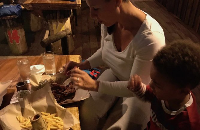 Island Lux is not quite complete, but I am happy to report that a few of the shops are now opening up, mainly the Jerk Centre, Pimentoz, so of course, I was excited to go and experience what they are offering. The ambience is spectacular. Great music, the decor and setting feel very tropical with all the shops and furniture made from wood. The music they play is perfect and the area is already getting a lot of attention from tourist and locals.